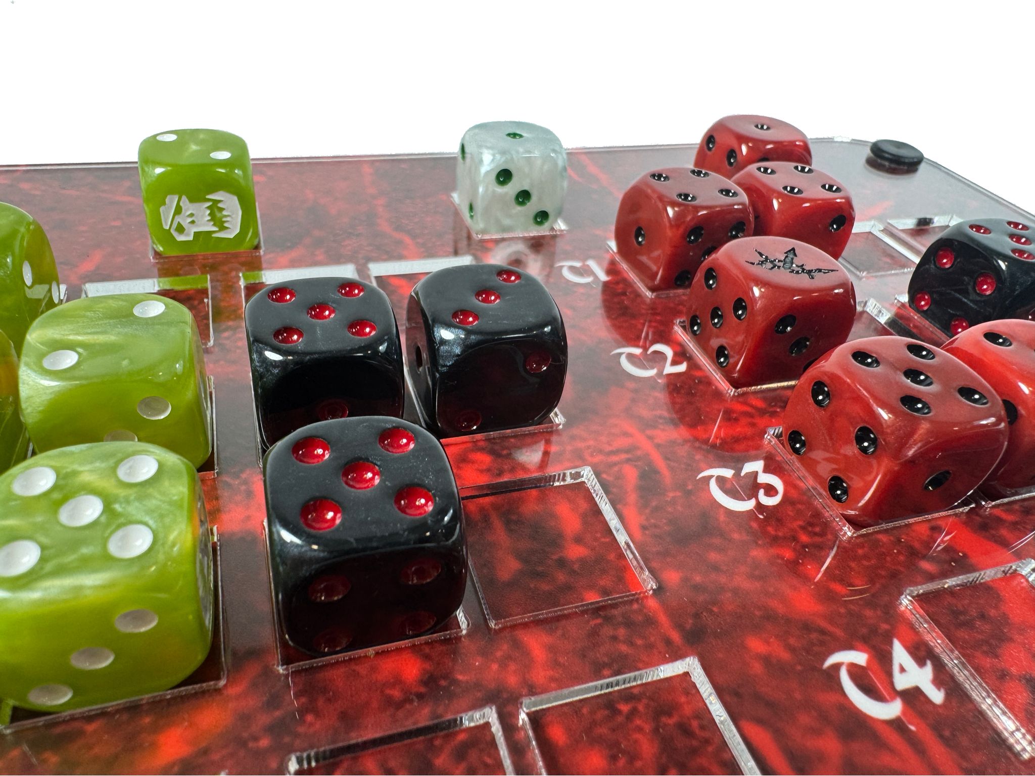 Compatible con dados estándar de 16 mm y fabricada en metacrilato de alta calidad.