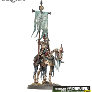 La caja también incluye una unidad de 5 Caballeros de los Túmulos, que vienen a reemplazar a los Caballeros Negros, pero que como en el caso de la Grave Guard podéis seguir usando vuestras minis viejas. En cuanto a sus reglas, parece que también ejercerán función de guardaespaldas para HÉROES montados, y tendrán la regla Cursed to Rise, que les permitirá devolver miniaturas destruidas a la unidad sin tirada de por medio.