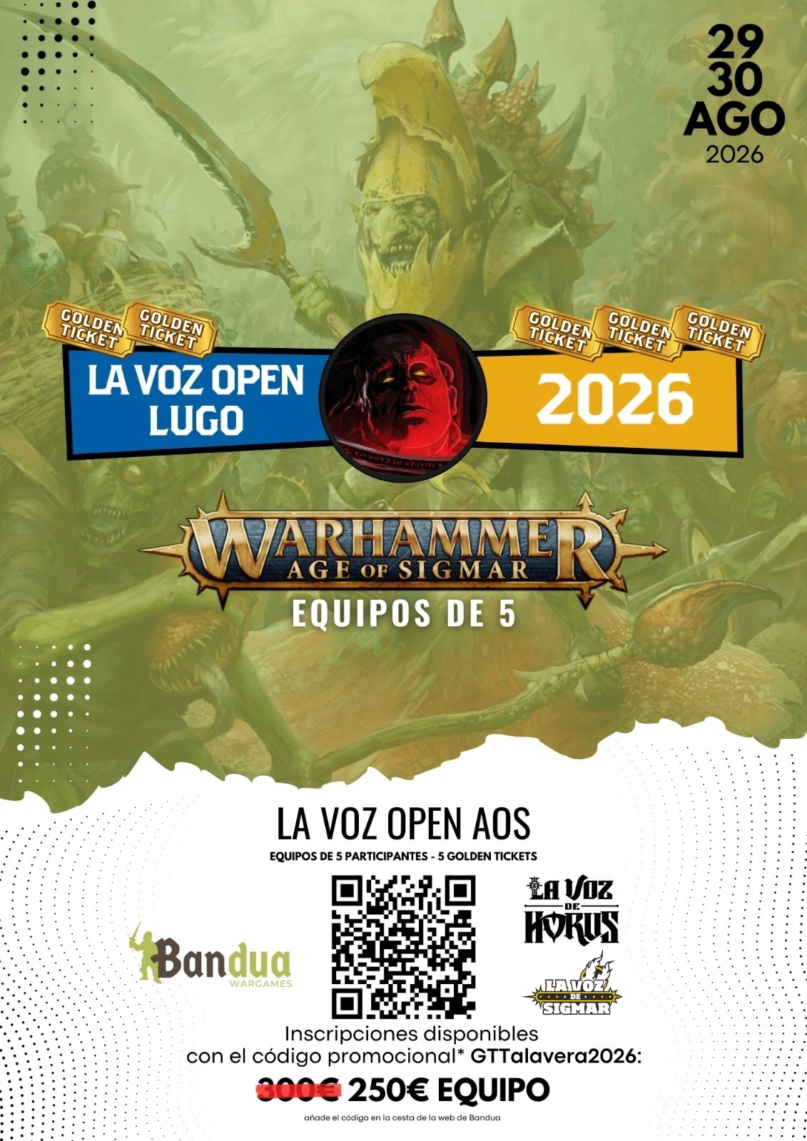 Este año La Voz Open 2026 para Age of Sigmar será por equipos, el ganador se lleva cinco golden tickets para acceder a los Campeonatos Mundiales y.. ¡sorteamos entre los demás participantes entradas gratuitas al siguiente GT Talavera!